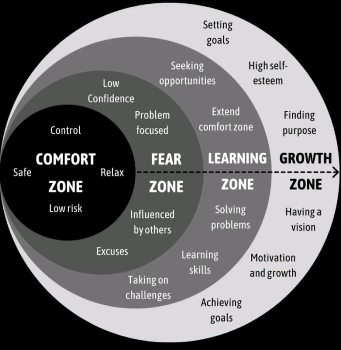 The comfort zone feels safe. The fear zone feels impossible. The learning zone feels humiliating. But the growth zone feels like freedom.